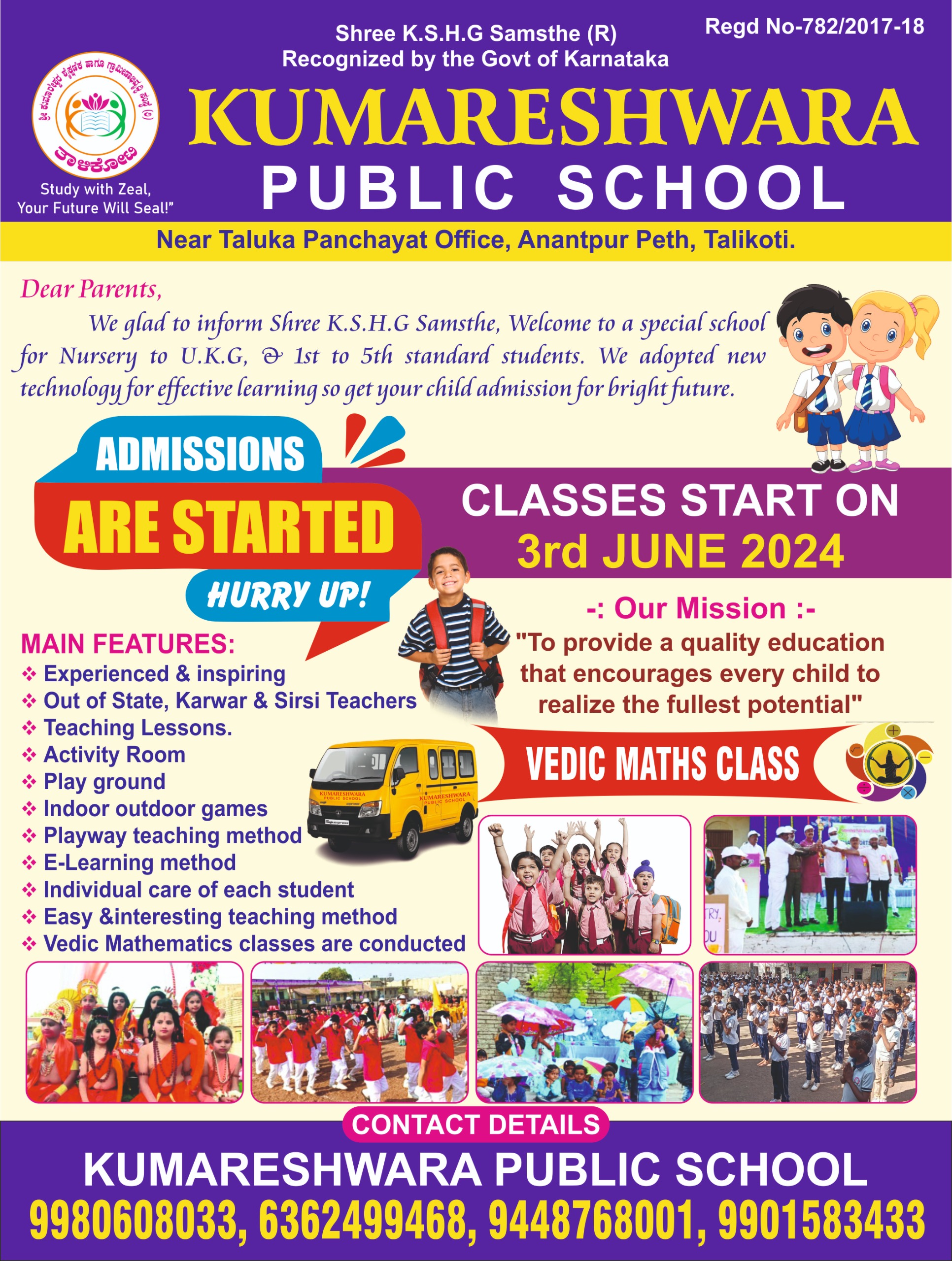 The school is Established by Shri Kumareshwar Shaikshanika hagu grameena abhirudhi Samsthe (R), Talikoti opposite central bus stand. Talikoti District Vijayapur-586214.